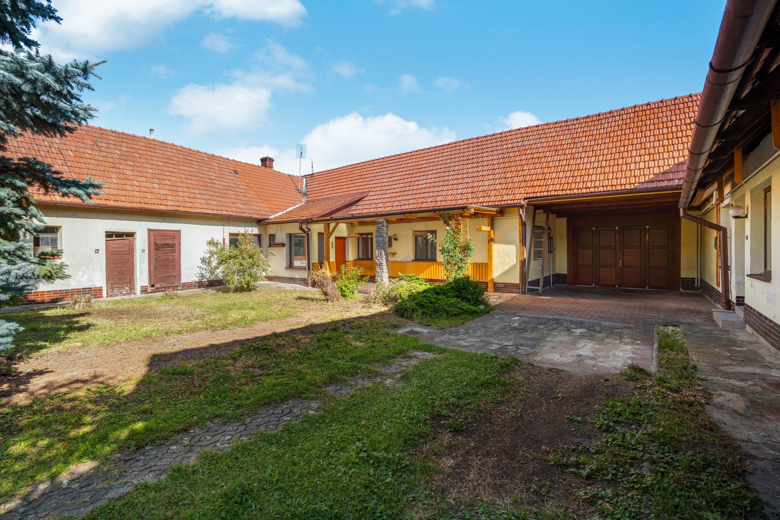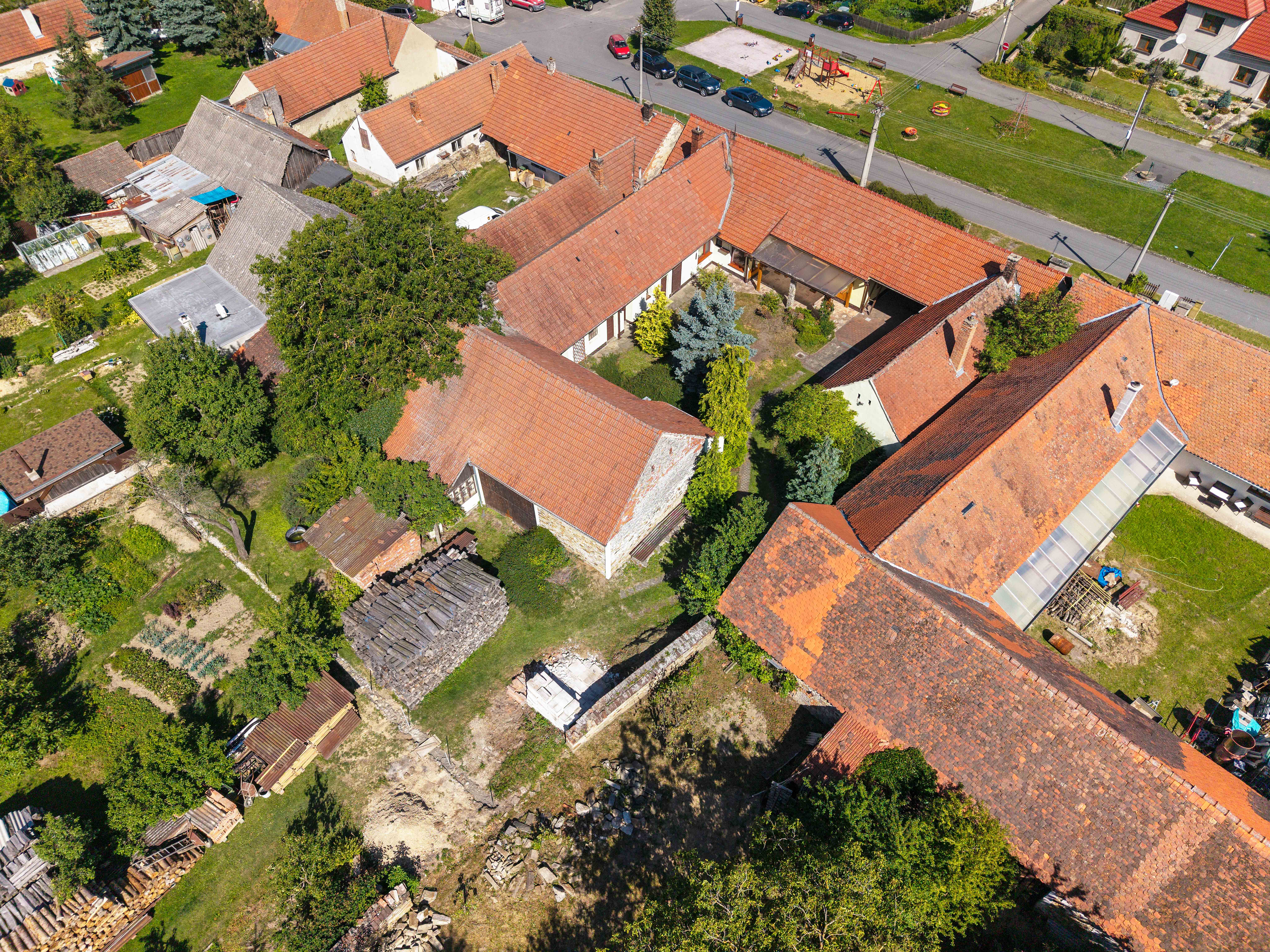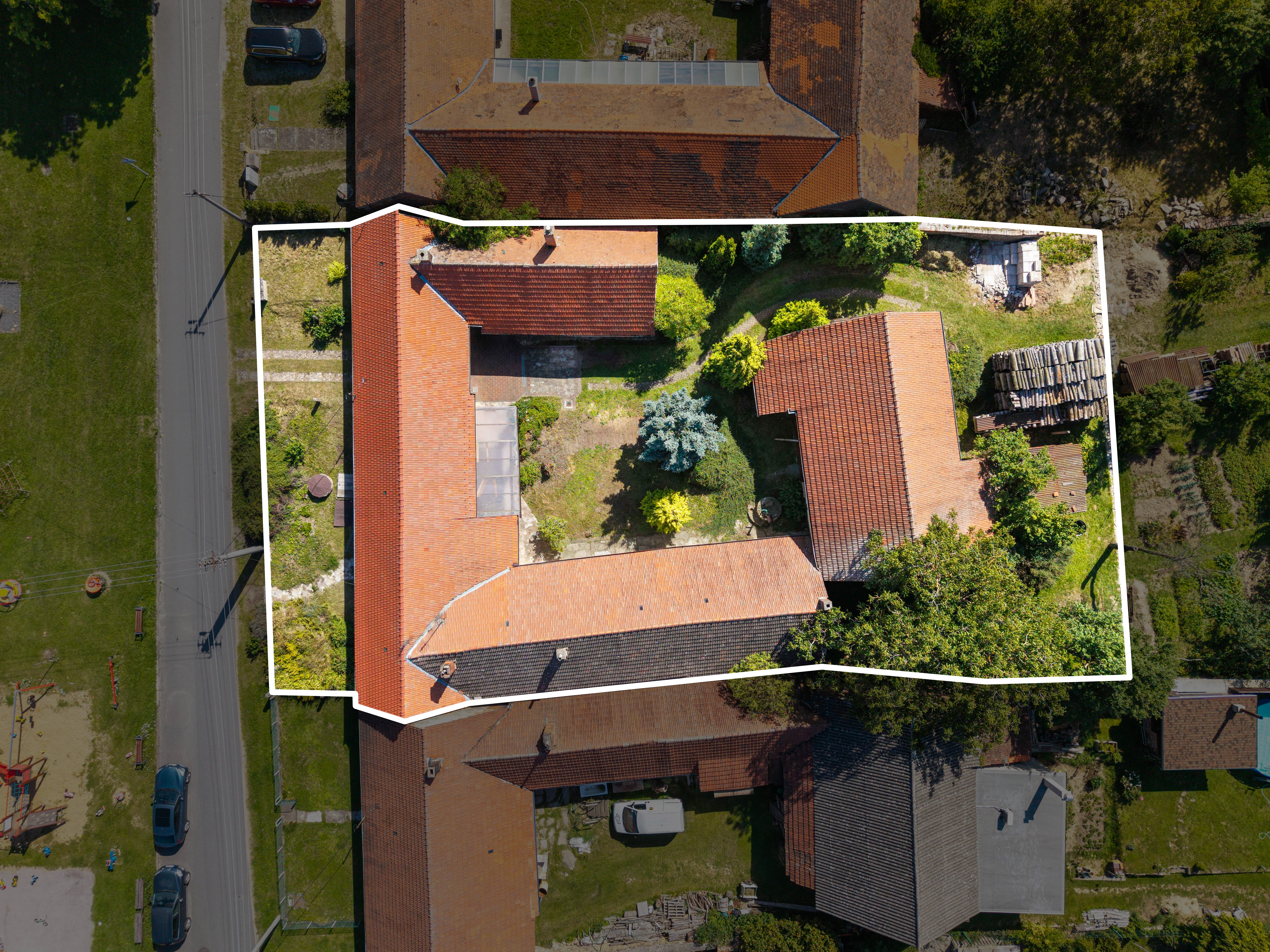 Nabízíme k prodeji rozlehlý rodinný dům, který dříve sloužil jako zemědělská usedlost, s vlastním uzavřeným dvorem, výměnkem, hospodářskými budovami a zahradou. Tato nemovitost nabízí novým majitelům zajímavý potenciál. Rozlehlý uzavřený dvůr poskytuje naprosté soukromí a díky vjezdu si na svůj pozemek nejen najedete autem či menší dodávkou, ale také zde pohodlně zaparkujete. Hlavní obytná část je o dispozici 4+1 s příslušenstvím, o podlahové ploše cca 122 m². K této budově patří i další prostory, situované odděleně – s vlastním vchodem, původně plánované jako výměnek. Dále jsou zde hospodářské chlívky a prostorná stodola, která opticky dělí dvorní část od zahrady. Pod stodolou je praktický sklep, který se využíval pro skladování ovoce a zeleniny. Celková plocha místností činí cca 379 m2 + sklep cca 24 m2. Na pozemku jsou dvě studny, ve dvoře a před domem.