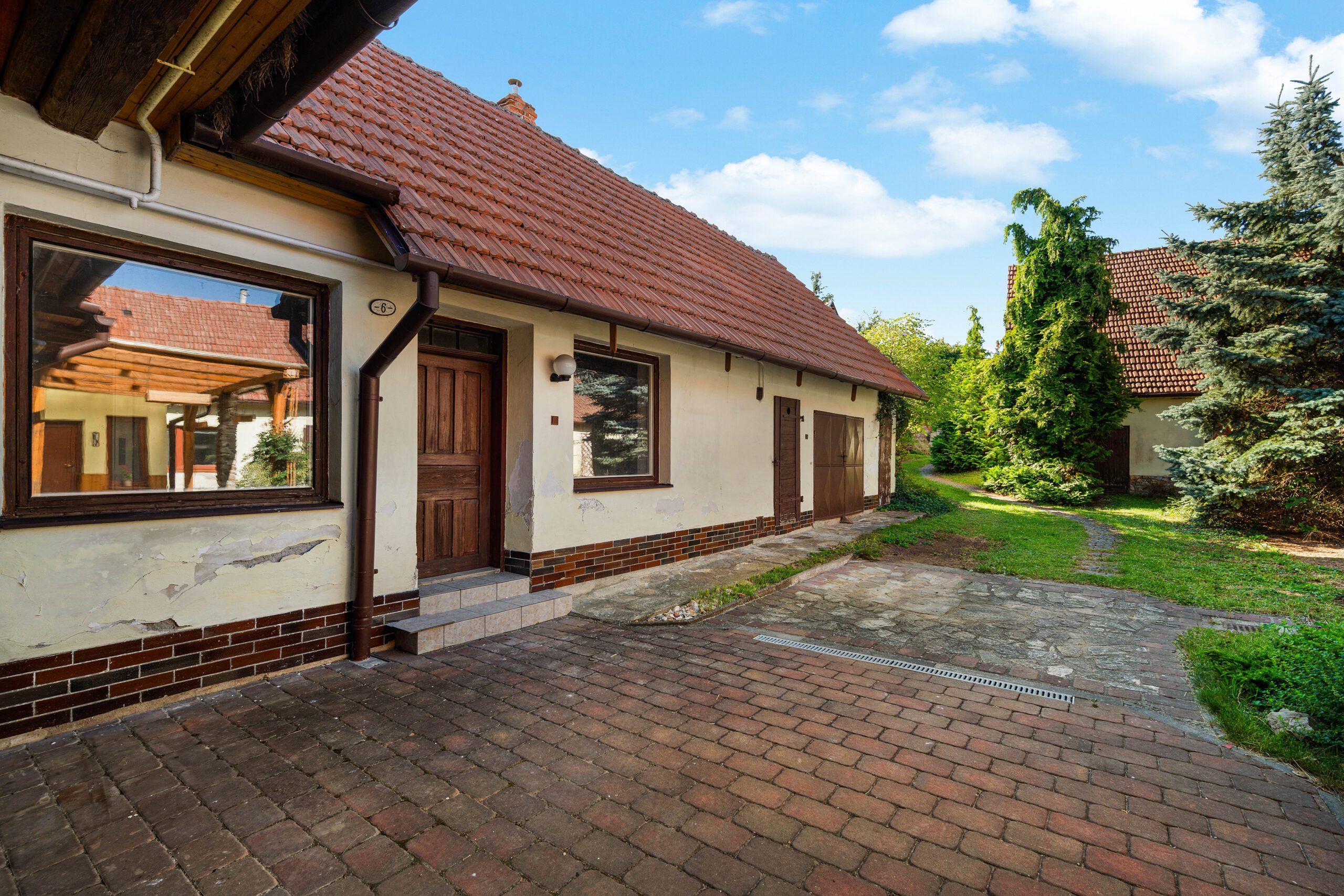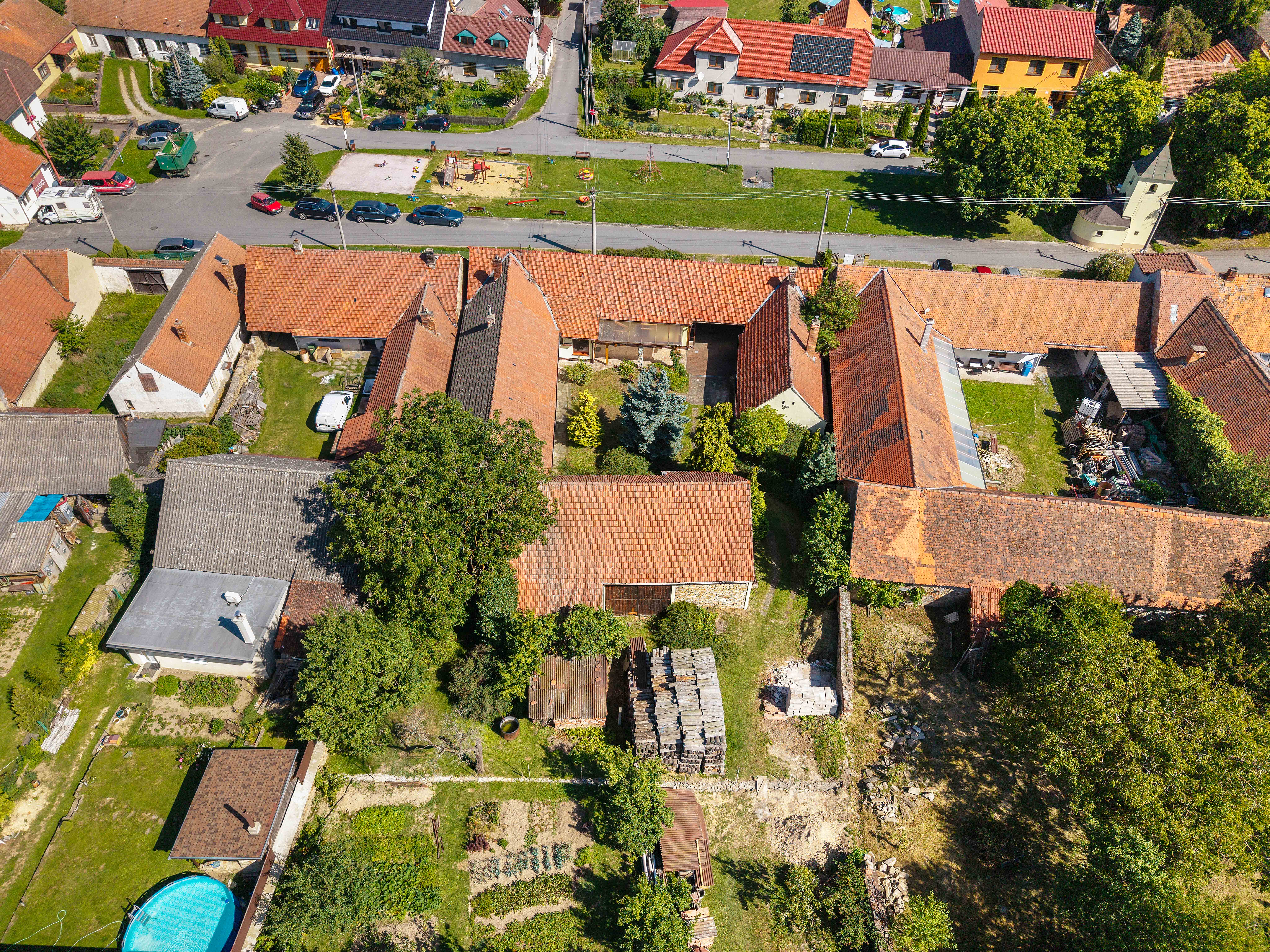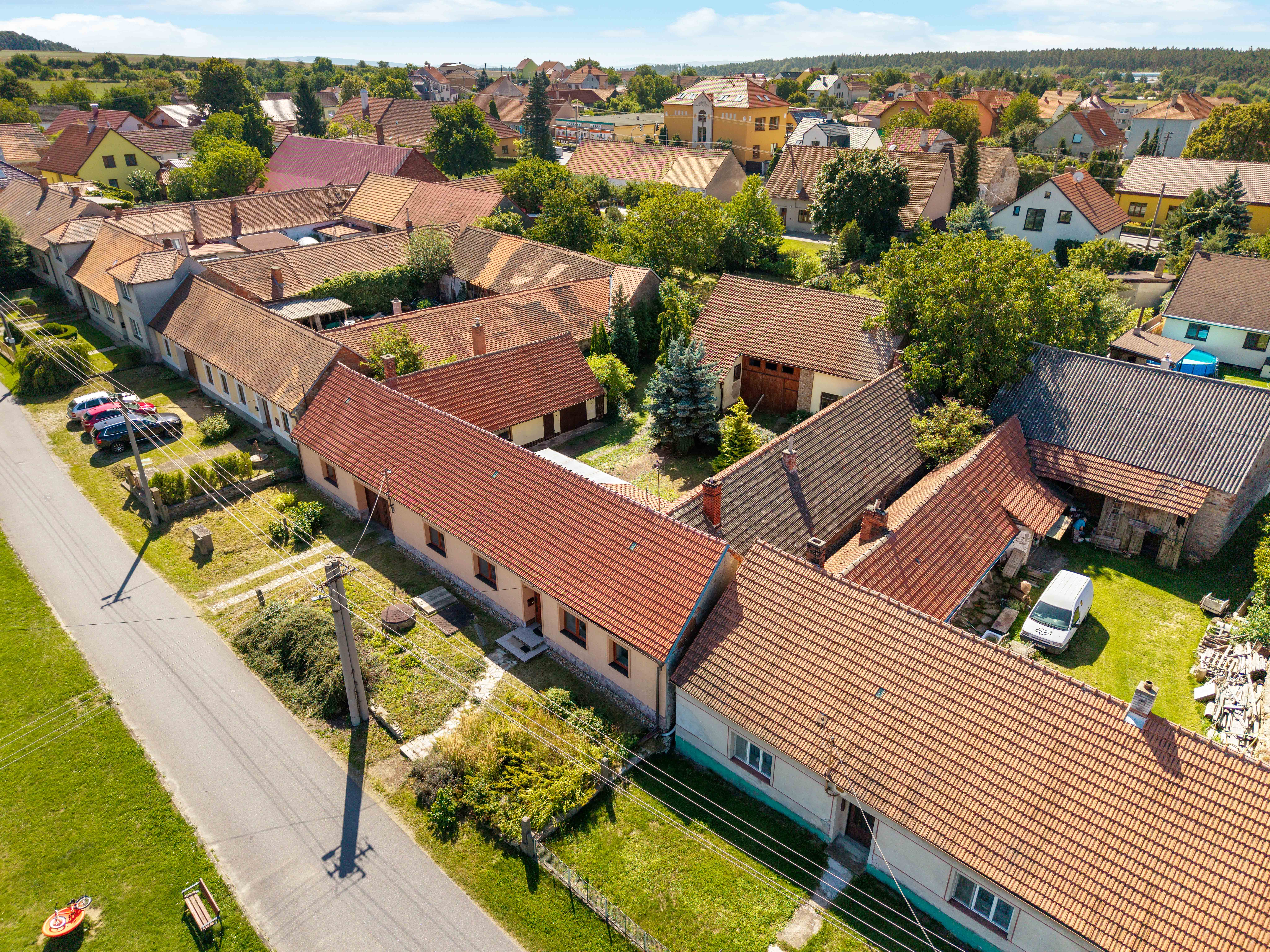 Nabízíme k prodeji rozlehlý rodinný dům, který dříve sloužil jako zemědělská usedlost, s vlastním uzavřeným dvorem, výměnkem, hospodářskými budovami a zahradou. Tato nemovitost nabízí novým majitelům zajímavý potenciál. Rozlehlý uzavřený dvůr poskytuje naprosté soukromí a díky vjezdu si na svůj pozemek nejen najedete autem či menší dodávkou, ale také zde pohodlně zaparkujete. Hlavní obytná část je o dispozici 4+1 s příslušenstvím, o podlahové ploše cca 122 m². K této budově patří i další prostory, situované odděleně – s vlastním vchodem, původně plánované jako výměnek. Dále jsou zde hospodářské chlívky a prostorná stodola, která opticky dělí dvorní část od zahrady. Pod stodolou je praktický sklep, který se využíval pro skladování ovoce a zeleniny. Celková plocha místností činí cca 379 m2 + sklep cca 24 m2. Na pozemku jsou dvě studny, ve dvoře a před domem.