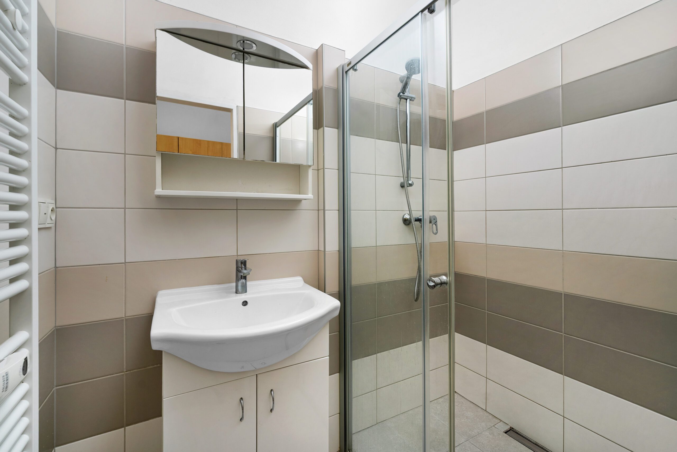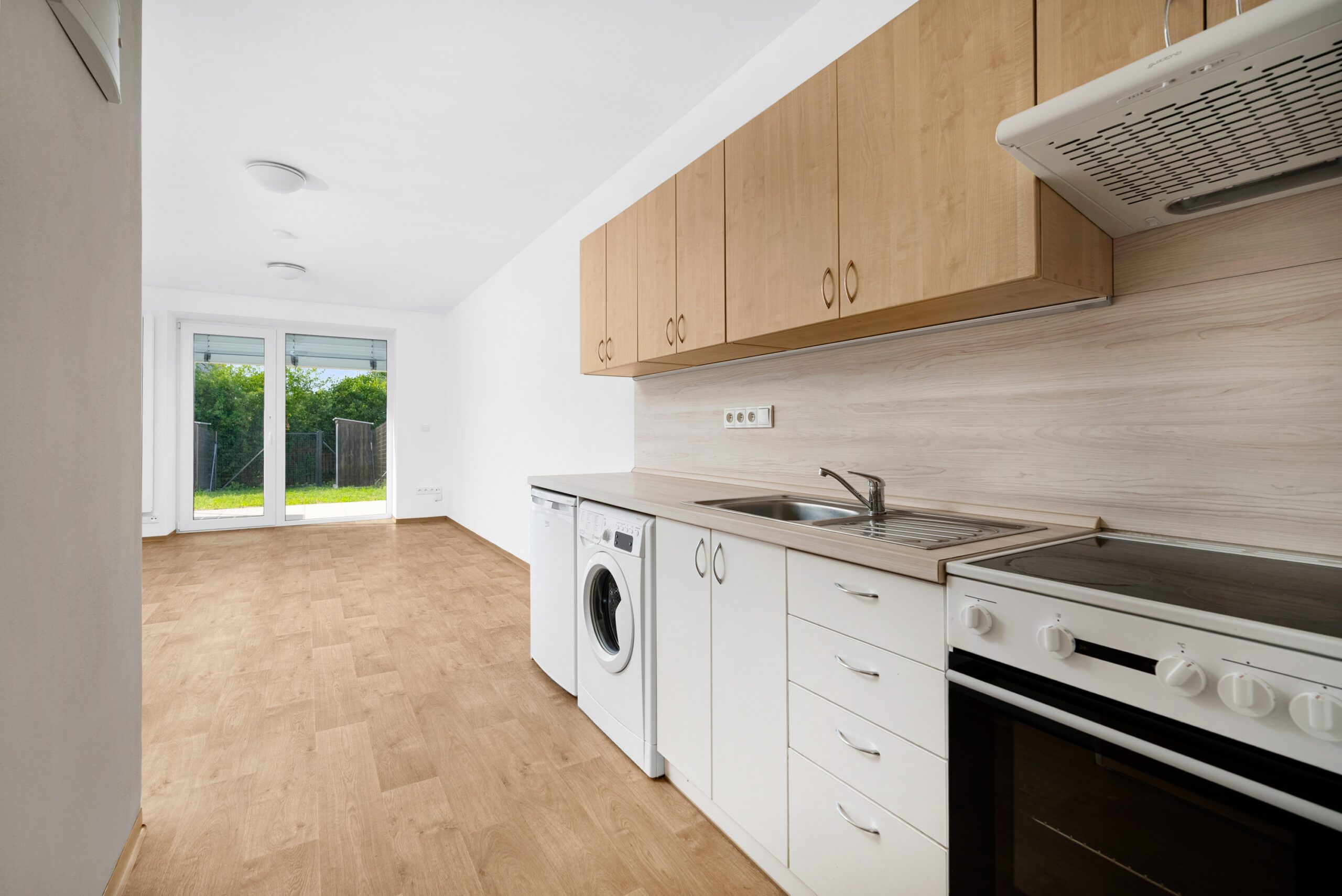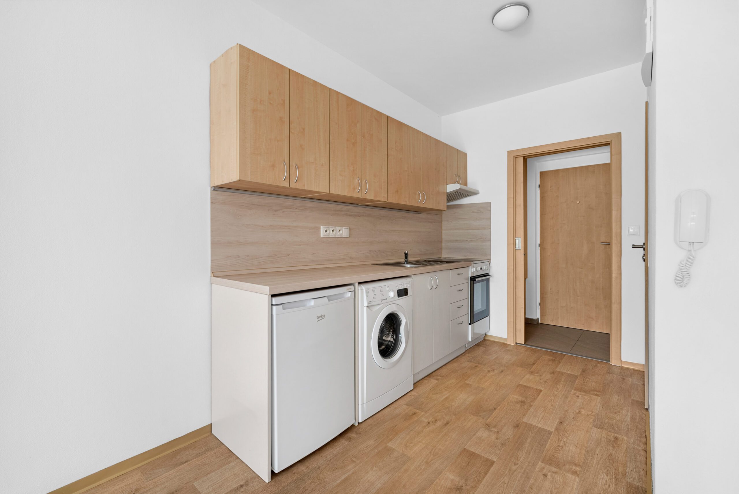 Byt je vybaven lednicí, pračkou a elektronicky ovládanými žaluziemi. Koupelna a toaleta jsou řešeny samostatně. K bytu náleží také sklepní kóje a vyhrazené parkovací stání přímo u domu.