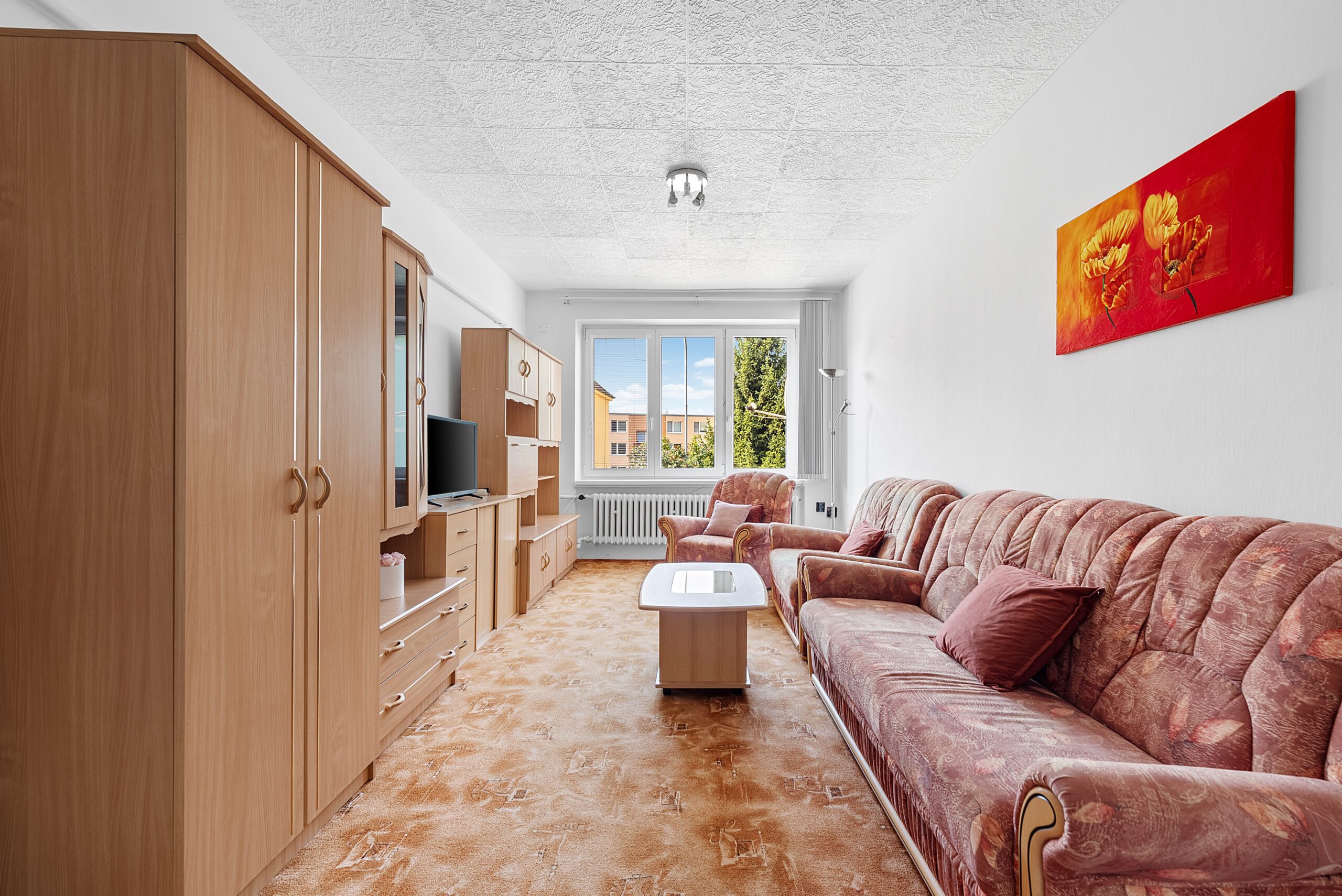 Byt má podlahovou plochu cca 48 m² a k němu náleží dva sklepy o velikosti 2,4 m² a 11,9 m², které poskytují dostatek úložného prostoru.