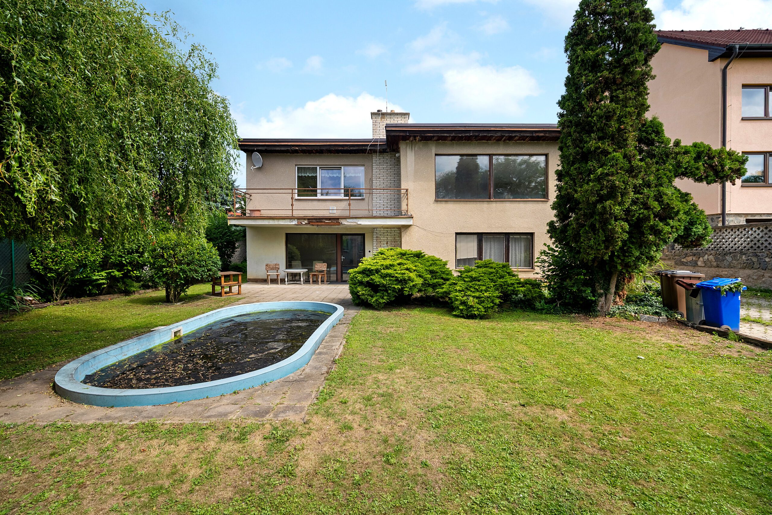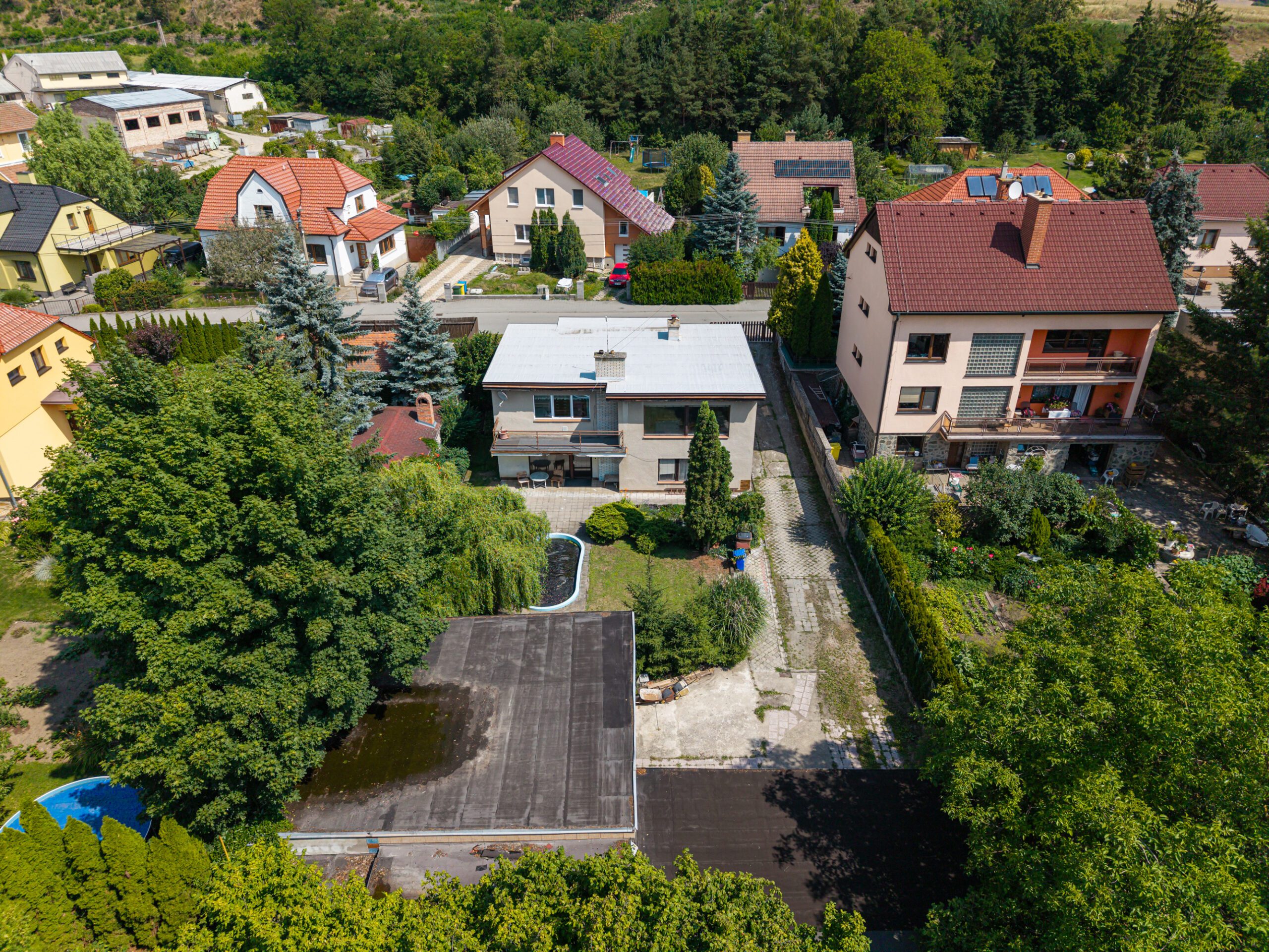 Budova nabízí dvě bytové jednotky o dispozicích 3+1 (cca 115 m² a 105 m²) plus garáž v hlavní budově, plus další samostatně přístupné garáže a víceúčelový objekt (cca 209 m²) na konci pozemku se samostatnými vstupy – vejdou se tři osobní auta. Celková výměra pozemku 926 m² zajišťuje dostatek soukromí i prostoru pro bydlení, podnikání nebo investiční využití. Součástí pozemku je také bazén.