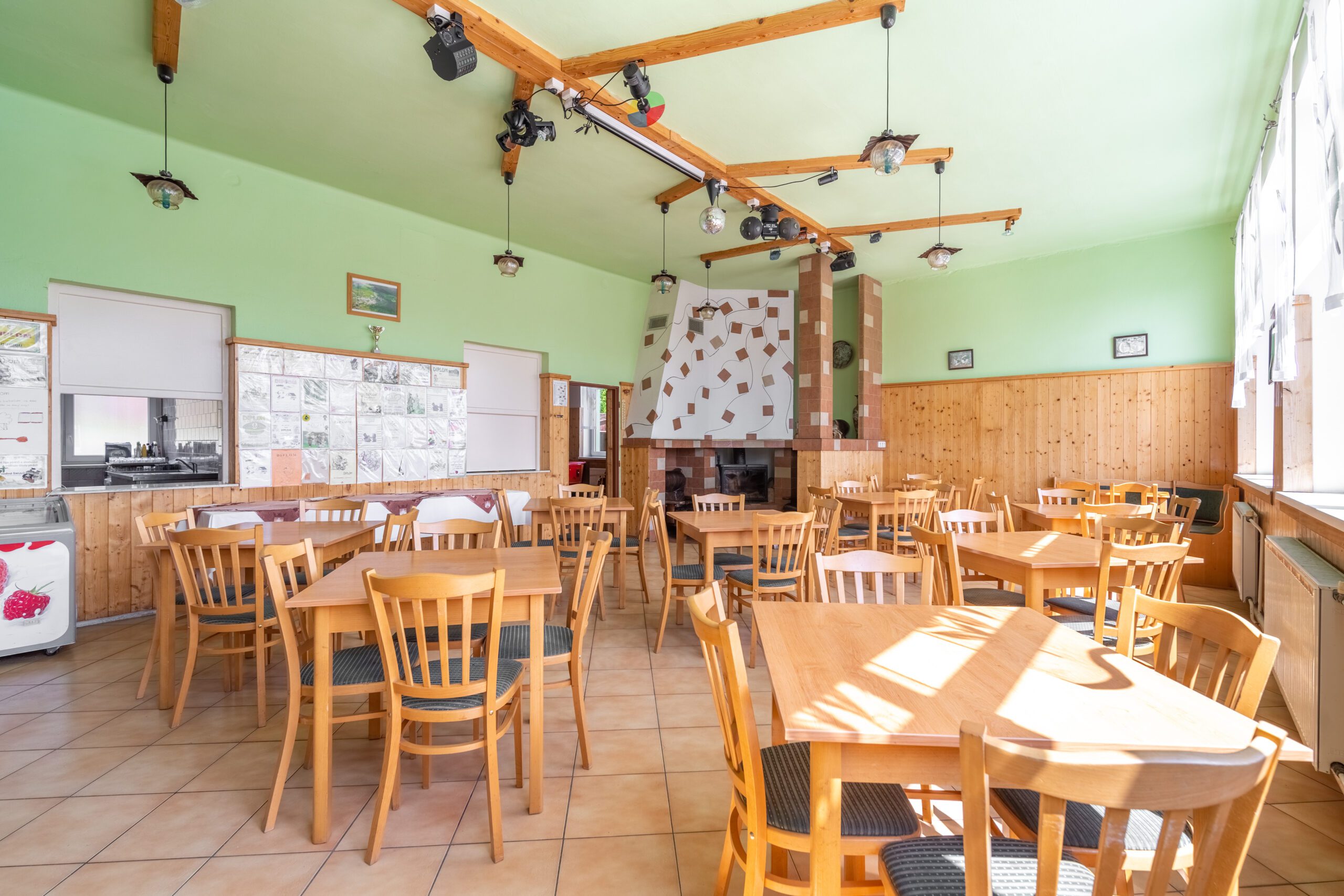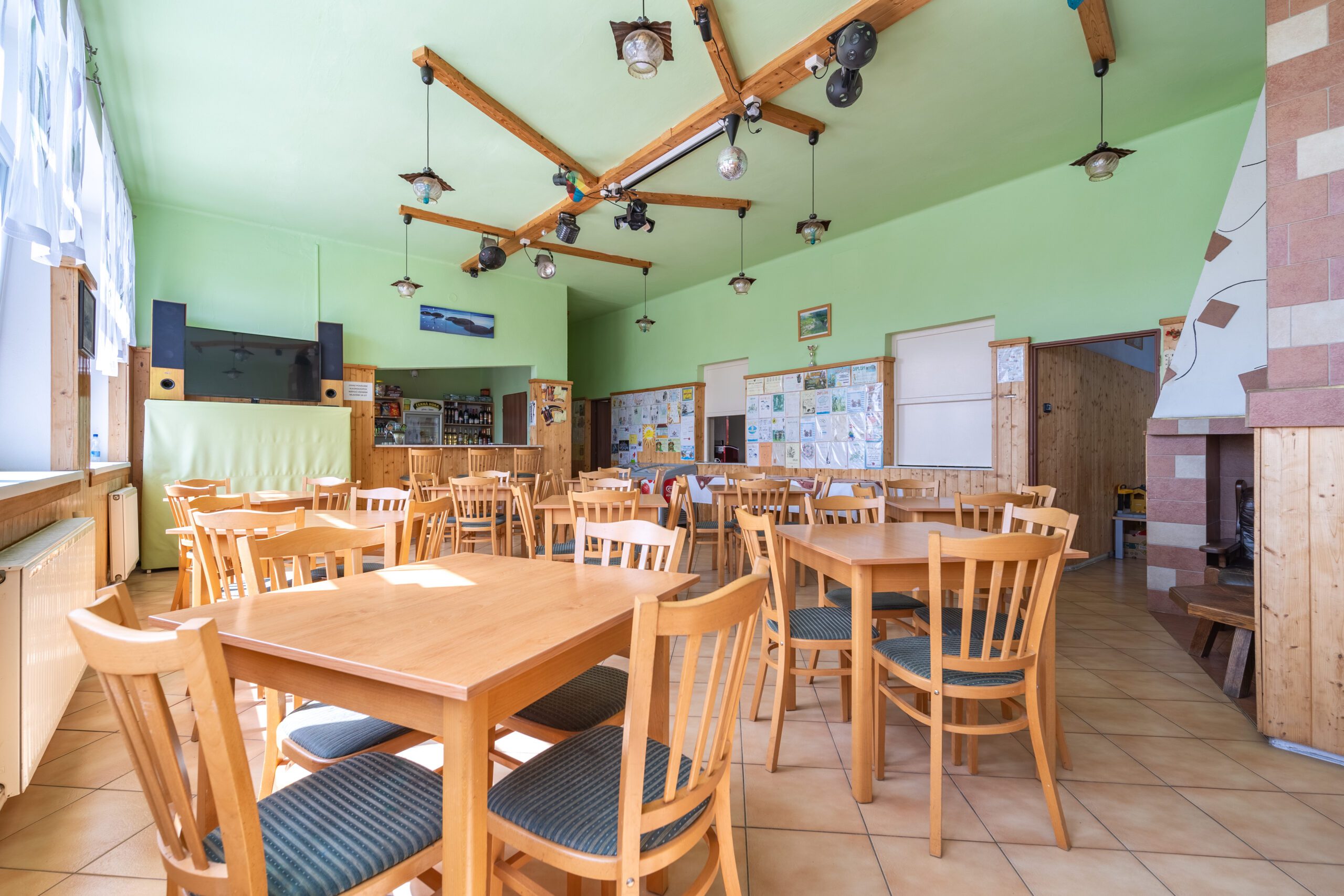 • Restaurace, bar, jídelna, dětský koutek, prostor pro diskotéku a laser show